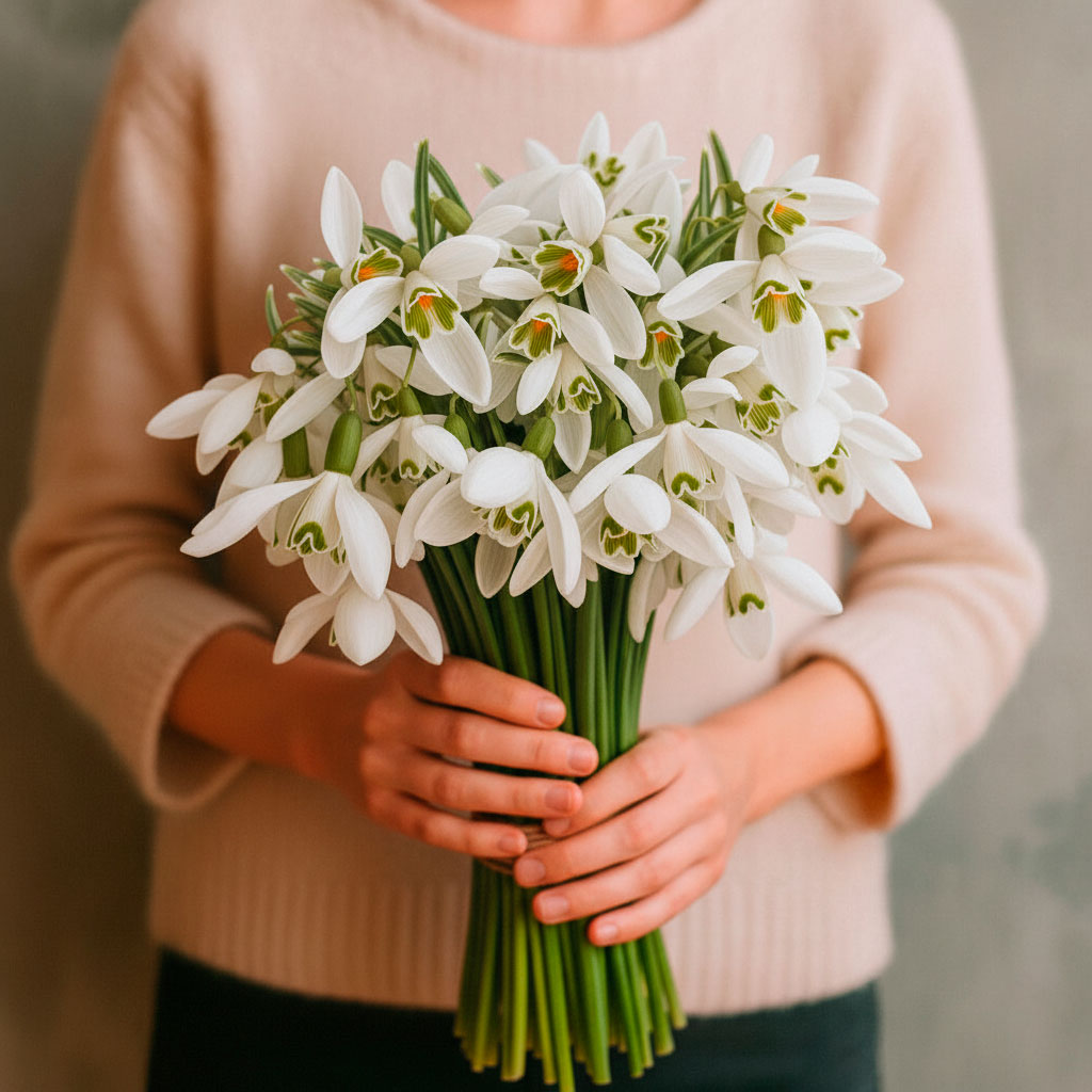 Изящные подснежники в этом букете создают атмосферу весенней свежести. Букет перевязан натуральной лентой, что подчёркивает его естественную красоту. Возможны варианты с матовой плёнкой или декоративной сеткой. Прекрасный подарок для любимой на 8 марта.